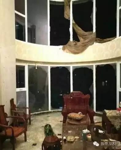 多間別墅抵擋不住“莫蘭蒂”的暴力,已舉手投降——片片玻璃滿天飛。陣地失守了