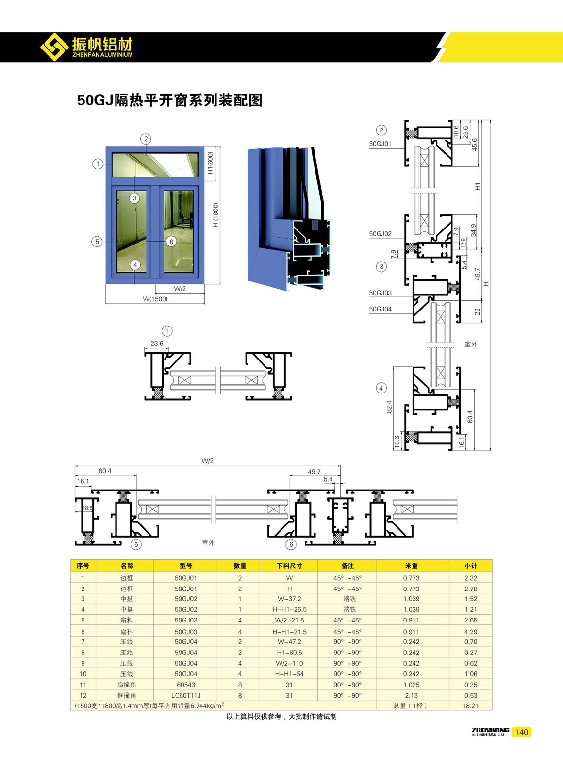 隔熱平開窗系列 - 50GJ隔熱平開窗系列(注膠)