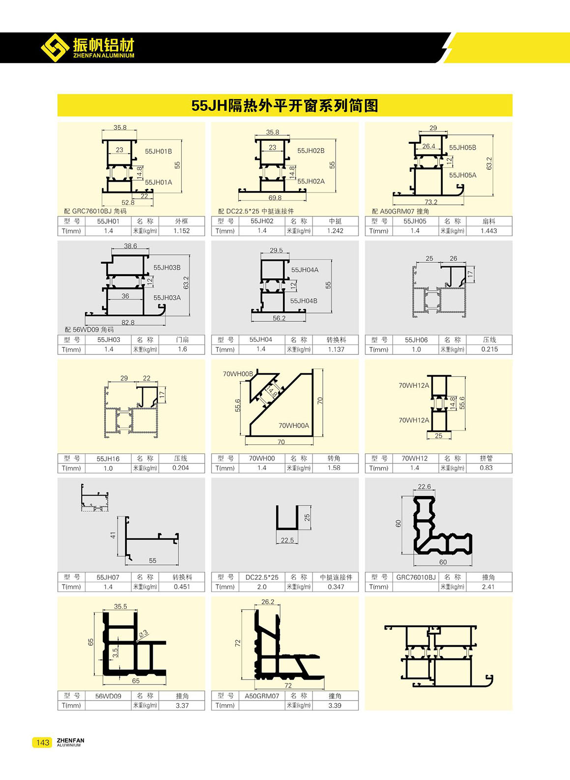 隔熱平開窗系列 - 55JH隔熱外平開窗系列