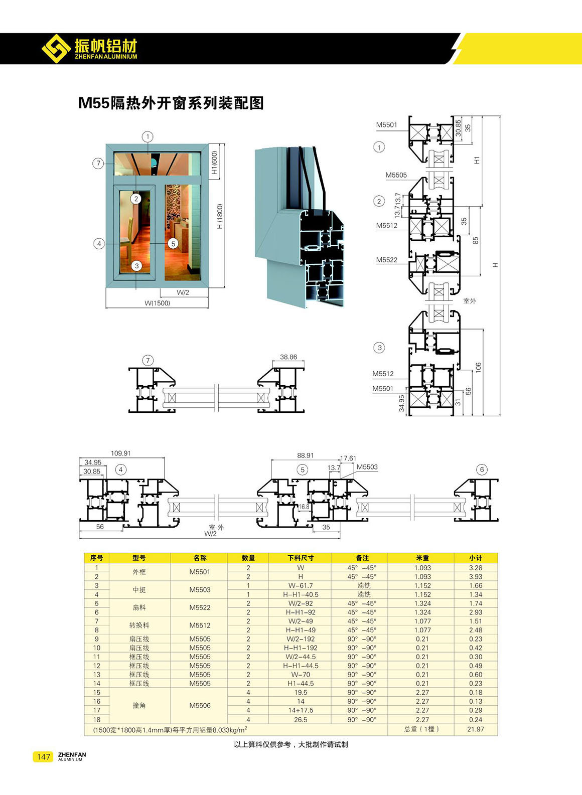 隔熱平開(kāi)窗系列 - M55隔熱平開(kāi)窗系列