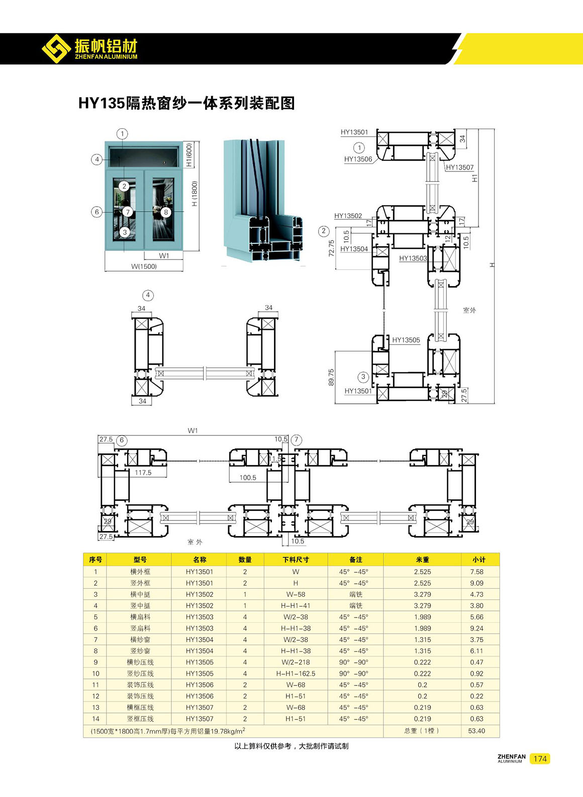 隔熱平開窗系列 - HY135隔熱平開紗窗一體系列